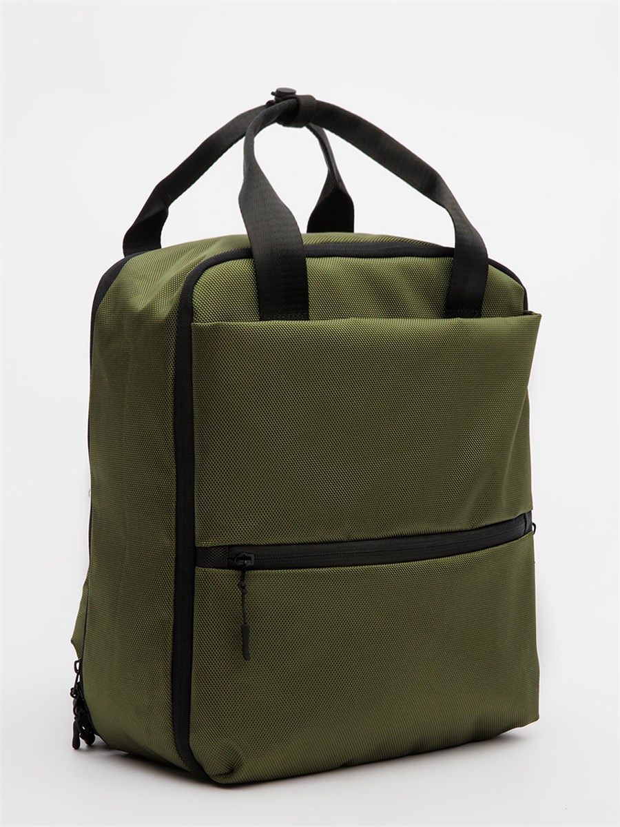 Рюкзак-трансформер увеличивается в ширину на 12 см и превращается в дорожный саквояж, который по габаритам является ручной кладью для стандартов авиакомпании "Победа". Имеет крепление на ручку чемодана.