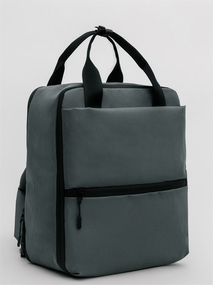 Рюкзак-трансформер увеличивается в ширину на 12 см и превращается в дорожный саквояж, который по габаритам является ручной кладью для стандартов авиакомпании "Победа". Имеет крепление на ручку чемодана.