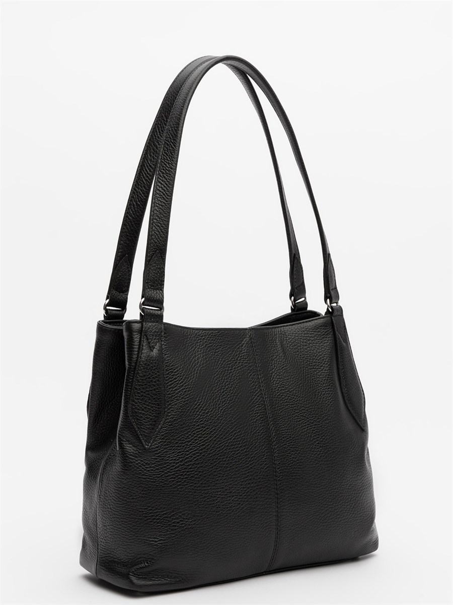 Классическая сумка-тоут из натуральной кожи – идеальный выбор для повседневного образа. Просторная модель среднего размера с двумя удобными отделами и длинными плечевыми ручками обеспечивает комфорт в ношении. Внутри – два стандартных кармана на молнии (по одному в каждом отделе) для практичного хранения мелочей. Снаружи расположен дополнительный задний карман на молнии, а на передней части – стильное тиснение бренда. Элегантный дизайн и функциональность делают эту сумку универсальным аксессуаром на каждый день.