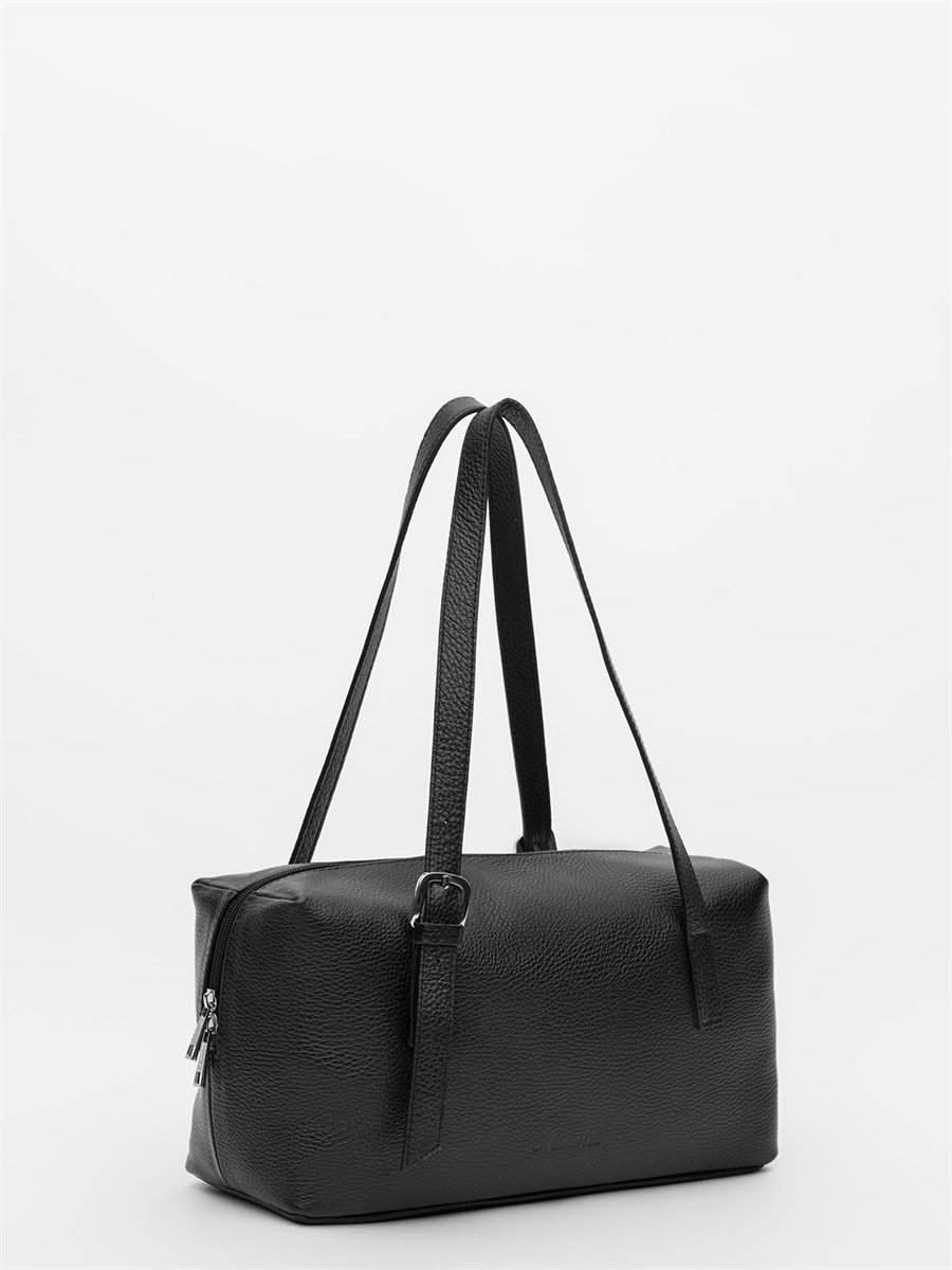 Стильный саквояж в модной форме "Еast-west" из натуральной кожи с вытянутым горизонтальным силуэтом. Регулируемые длинные ручки с пряжками позволяют носить сумку на плече или в руке. Внутри - два стандартных кармана для удобного хранения мелочей. Задний карман на молнии и тиснение на передней части добавляют практичности и элегантности. Идеальный аксессуар для тех, кто ценит трендовый дизайн и качественные материалы.
