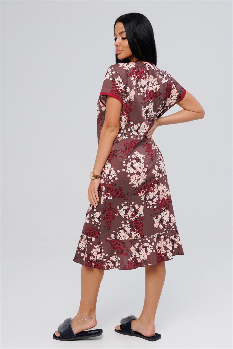 Халат женский выполнен из трикотажного полотна кулирка. Халат на молнии чуть ниже колен.