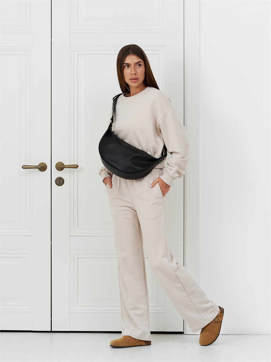 Практичные детали сумки: задний карман на молнии, удобная стропа для регулировки длины и мягкий крой, повторяющий изгиб тела.