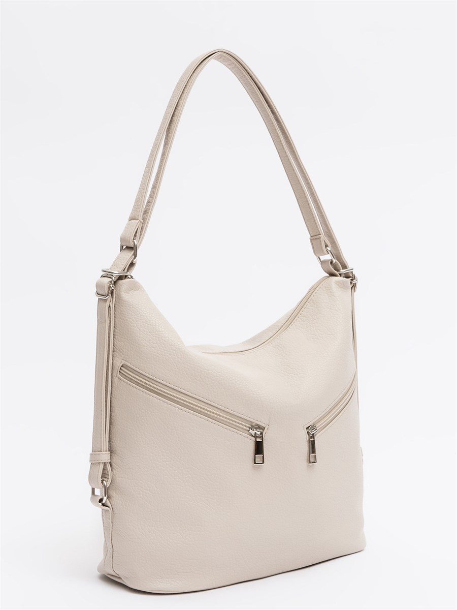 Мягкая форма легко превращается из стильного хобо в удобный рюкзак, подстраиваясь под ваши потребности. Просторное основное отделение с внутренней перегородкой-карманом и двумя диагональными карманами на молнии спереди обеспечивает идеальный порядок для всех вещей. Эти карманы не только функциональны, но и придают сумке современный динамичный вид. Незаменимый вариант для тех, кто ценит свободу выбора и практичность в каждой детали — носите её как угодно и куда угодно.