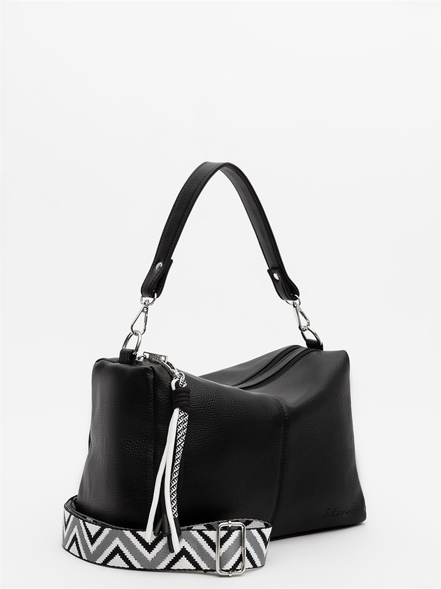 Сумка кросс-боди среднего размера — удобный и стильный аксессуар для повседневного использования. Оснащена двумя отделами на молниях, что позволяет удобно организовать пространство. Внутри расположен небольшой карман для мелочей, а на задней стороне — внешний карман на молнии. Сумка комплектуется длинным регулируемым ремнём из стропы на карабинах и короткой ручкой из винилискожи для комфортного ношения.