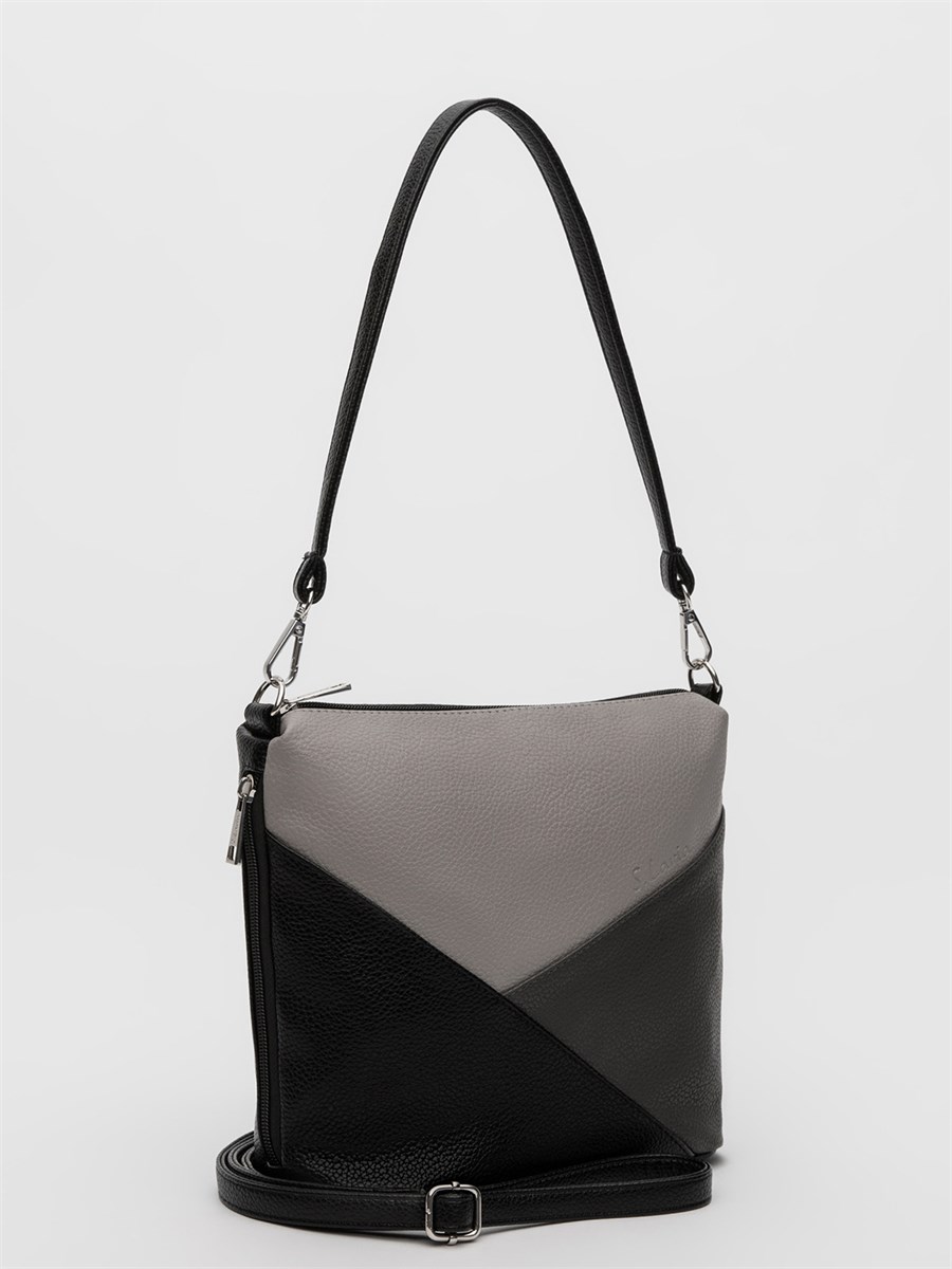 Элегантная сумка кросс-боди из винилискожи – стильный аксессуар, который подчеркнет ваш образ. Три вида кожи в передней разрезной детали создают эффектную игру фактур. Практичный отдел на молнии надежно сохранит ваши вещи, а два внешних кармана на молнии обеспечивают быстрый доступ к мелочам. Внутри – удобная организация: открытый карман для телефона и закрытый – для ценных вещей. В комплекте – два ремня (длинный регулируемый и короткий), позволяющие носить сумку как через плечо, так и в руках.