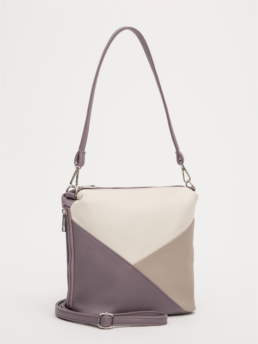 Элегантная сумка кросс-боди из винилискожи – стильный аксессуар, который подчеркнет ваш образ. Три вида кожи в передней разрезной детали создают эффектную игру фактур. Практичный отдел на молнии надежно сохранит ваши вещи, а два внешних кармана на молнии обеспечивают быстрый доступ к мелочам. Внутри – удобная организация: открытый карман для телефона и закрытый – для ценных вещей. В комплекте – два ремня (длинный регулируемый и короткий), позволяющие носить сумку как через плечо, так и в руках.