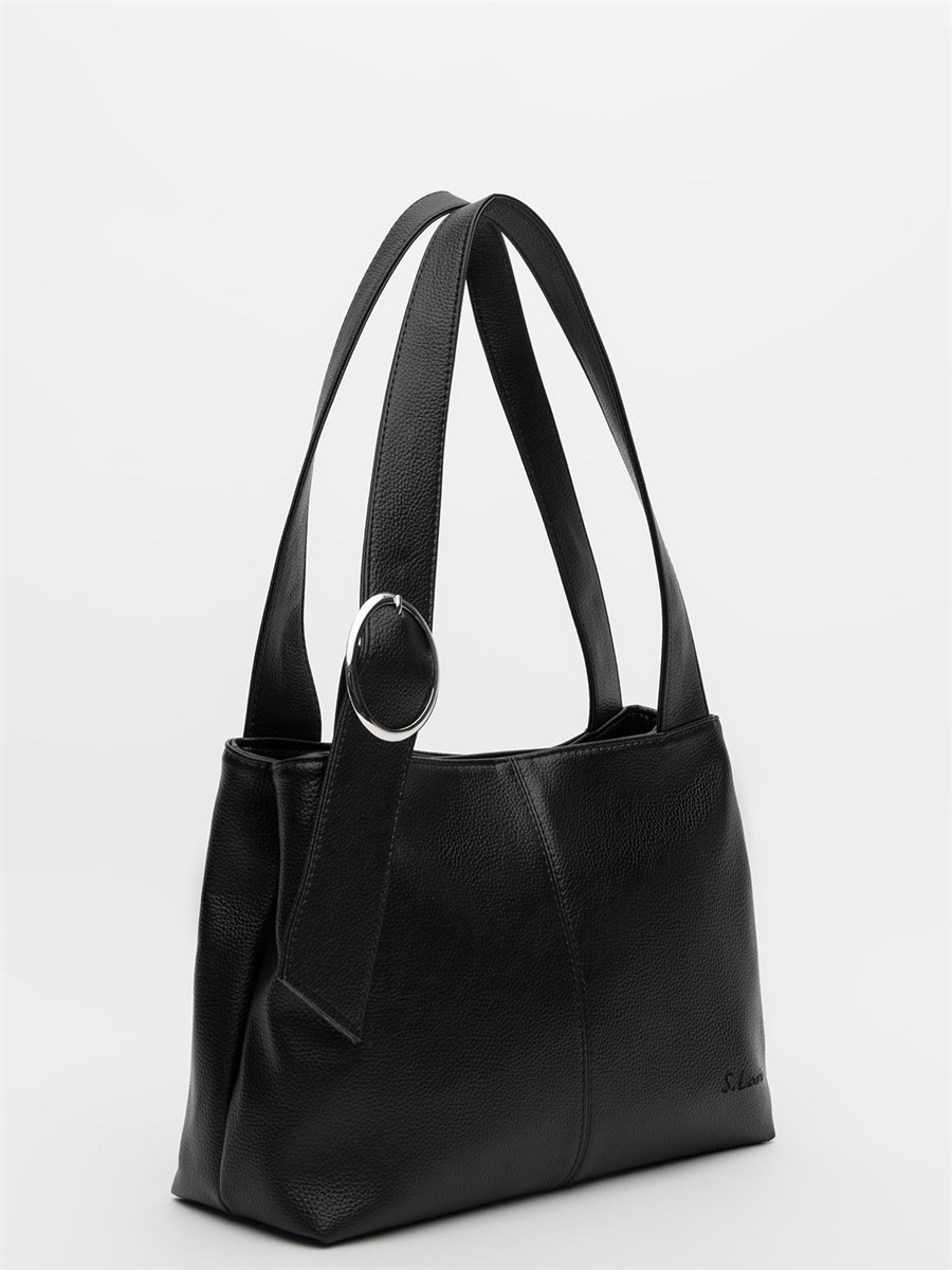Сумка-тоут среднего размера — универсальная модель для повседневного использования. Оснащена двумя отдельными отделениями на молниях, что обеспечивает удобную организацию содержимого. Плоские широкие ручки обеспечивают комфортное ношение, а декоративная пряжка на передней части добавляет стильный акцент. На задней стороне расположен карман на молнии, внутри — практичные карманы для мелочей.