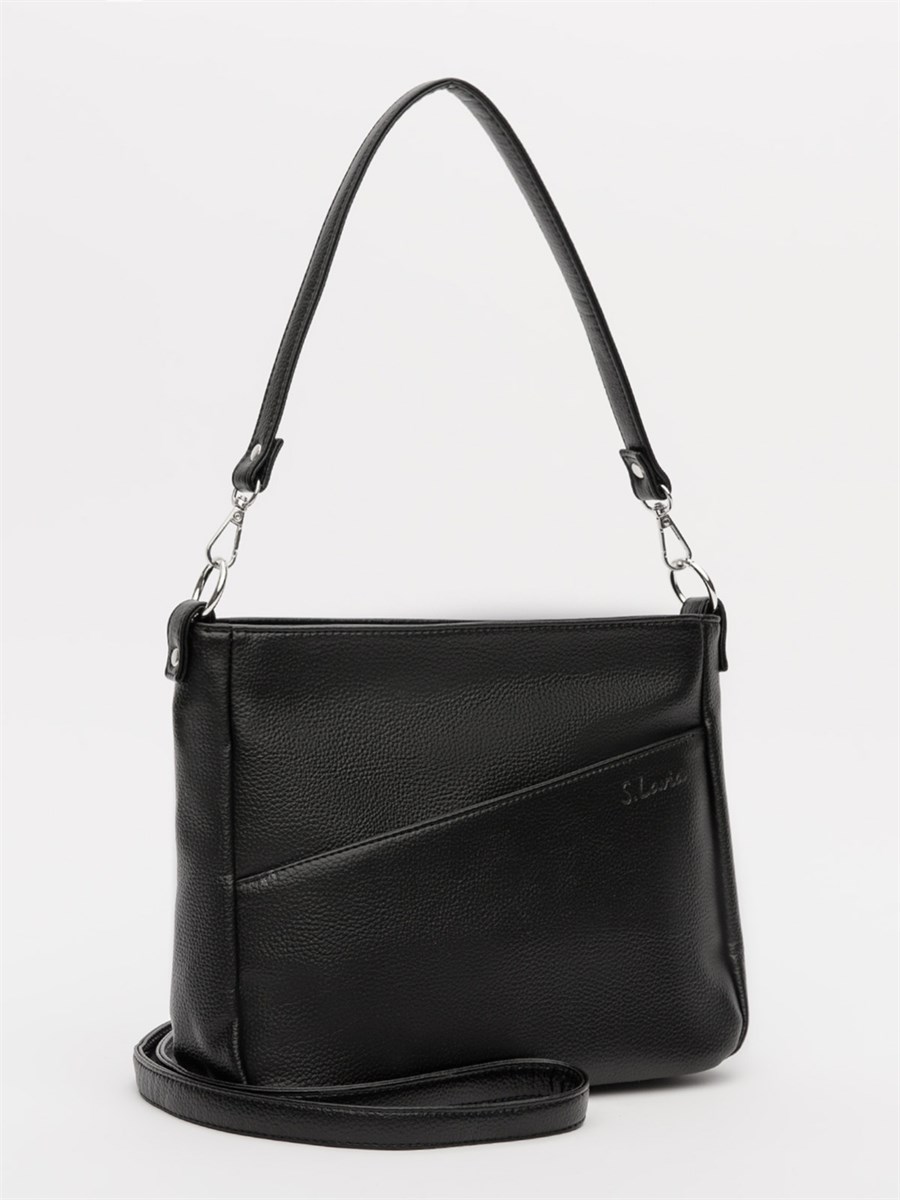 Геометричная форма с диагональным карманом и естественной складкой верха создаёт стильный женственный силуэт. В комплекте — съёмная короткая ручка и регулируемый ремень для разных вариантов ношения: в руке, на плече или через плечо.