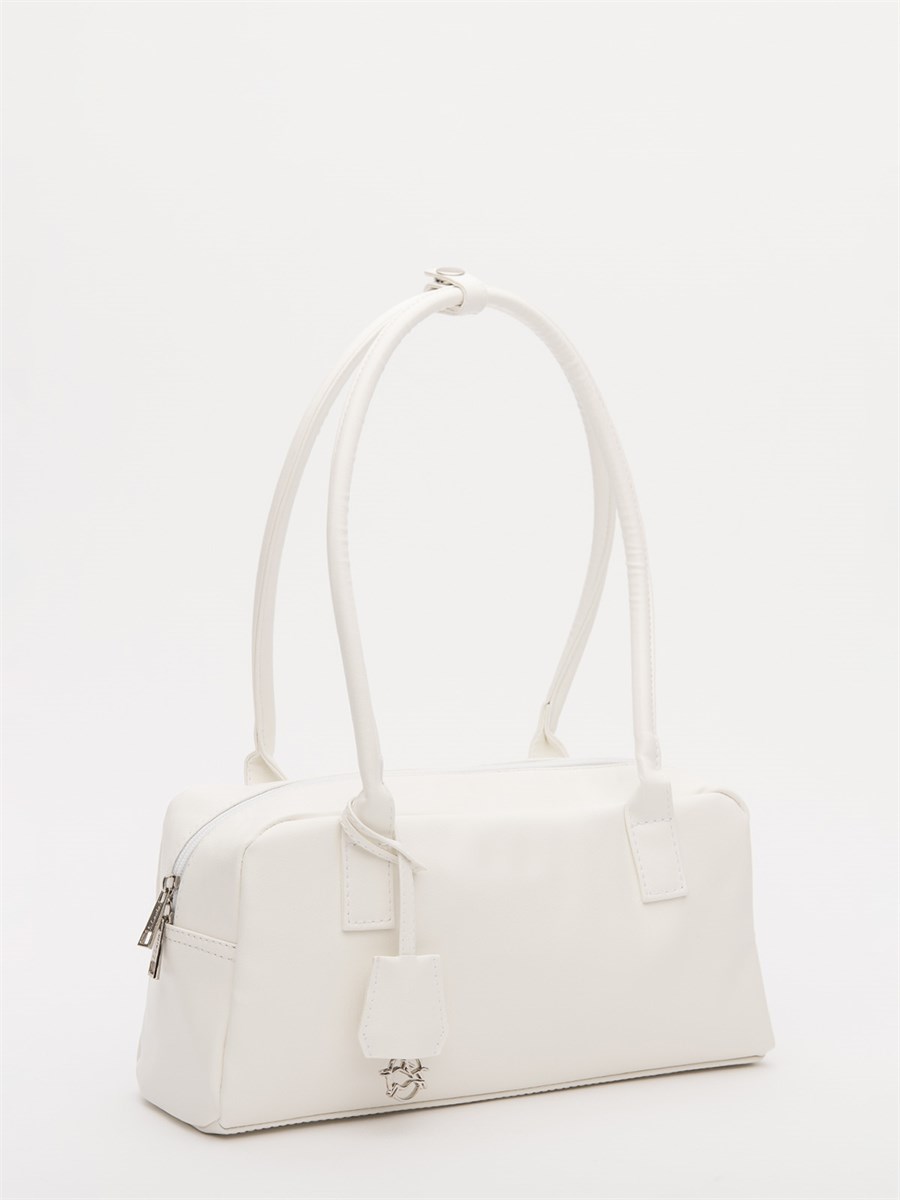 Основное отделение с удлинённой молнией на двух бегунках легко расстёгивается, а широкий бочок вмещает всё необходимое для работы и прогулок по городу. Модель представлена в классическом белом оттенке.