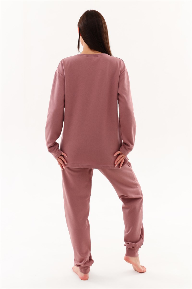Уютный удобный костюм из футера с начёсом. Удлинённый лонгслив свободного кроя с оригинальным принтом. Джоггеры с высокой посадкой, прямого свободного кроя, слегка зауженные к низу. Имеют внутренние карманы. Пояс обработан на поясной машине, поэтому резинка не скручивается при эксплуатации. Манжеты и горловина изготовлены из качественной резинки - рибаны в цвет основной ткани. В измерении обхвата талии указан размер резинки, которая без проблем растягивается до стандартных значений фигуры. Этот костюм можно использовать в повседневной носке, а так же комфортно находиться в домашней обстановке.