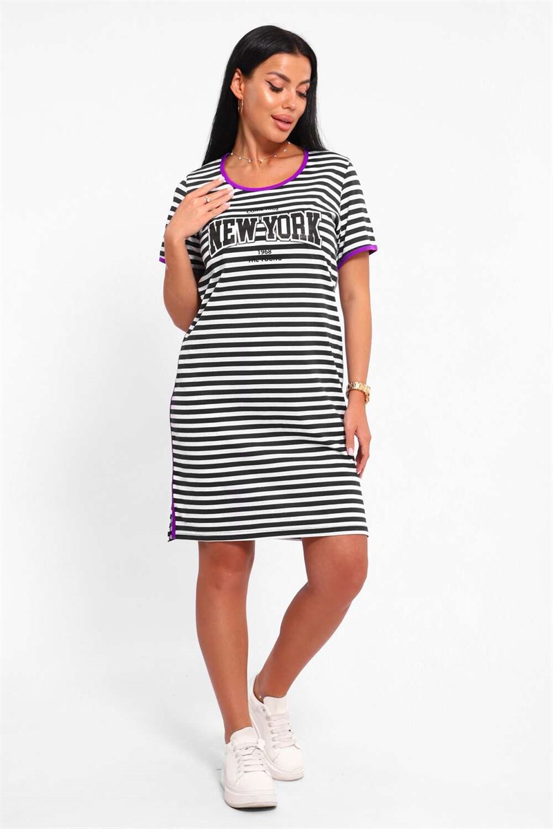 Туника - для отдыха, поездки на море и летних прогулок. Легкая ткань, натуральный хлопок, который приятен к телу и дарит чувство легкости. Платье летнее трикотажное прямого силуэта с коротким рукавом. Горловина декорирована цветной вставкой. Платье пляжное летнее дополнено современным рисунком и контрастными деталями по бокам. Для практичности туника слегка удлинена. Набивная ткань в полоску всегда актуальна и еще долгое время будет любимой всеми модницами. Идеальная посадка по фигуре скроет все несовершенства и подчеркнет достоинства. Туника подойдет для женщин, для девушек и для девочек любого типа фигуры, на большие размеры. Женское платье для дома, для дачи, для отдыха из качественной вискозы, которая не линяет, гипоаллергенно, позволяет коже дышать на протяжении всего дня. Также футболка платье в полоску можете купить как подарок.