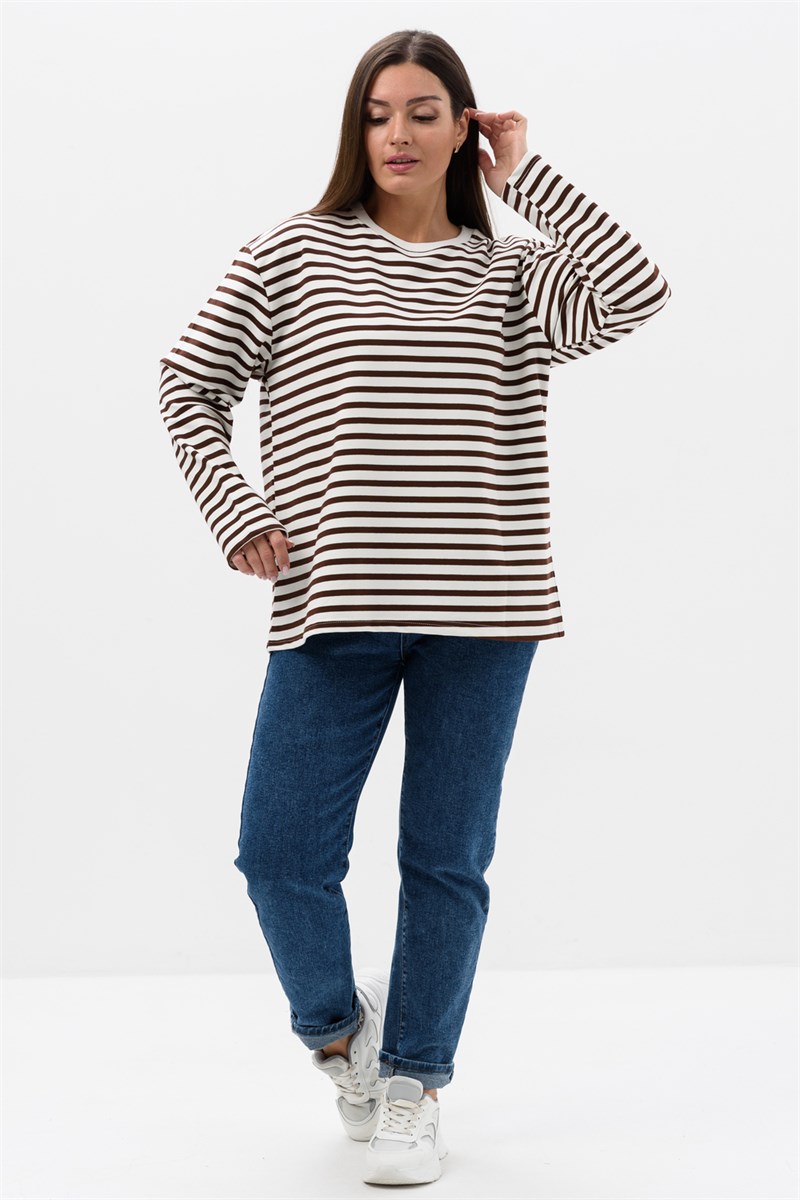 Свитшот - это модный элемент вашего гардероба, который сочетает в себе уют и стиль - идеально подходит для любителей комфорта. Изделие с длинным рукавом и округлой горловиной, выполнен из ткани в полоску, что делает его трендом сезона. Благодаря достаточно свободному крою, свитшот обеспечивает свободу движений - хороший выбор для повседневной носки.