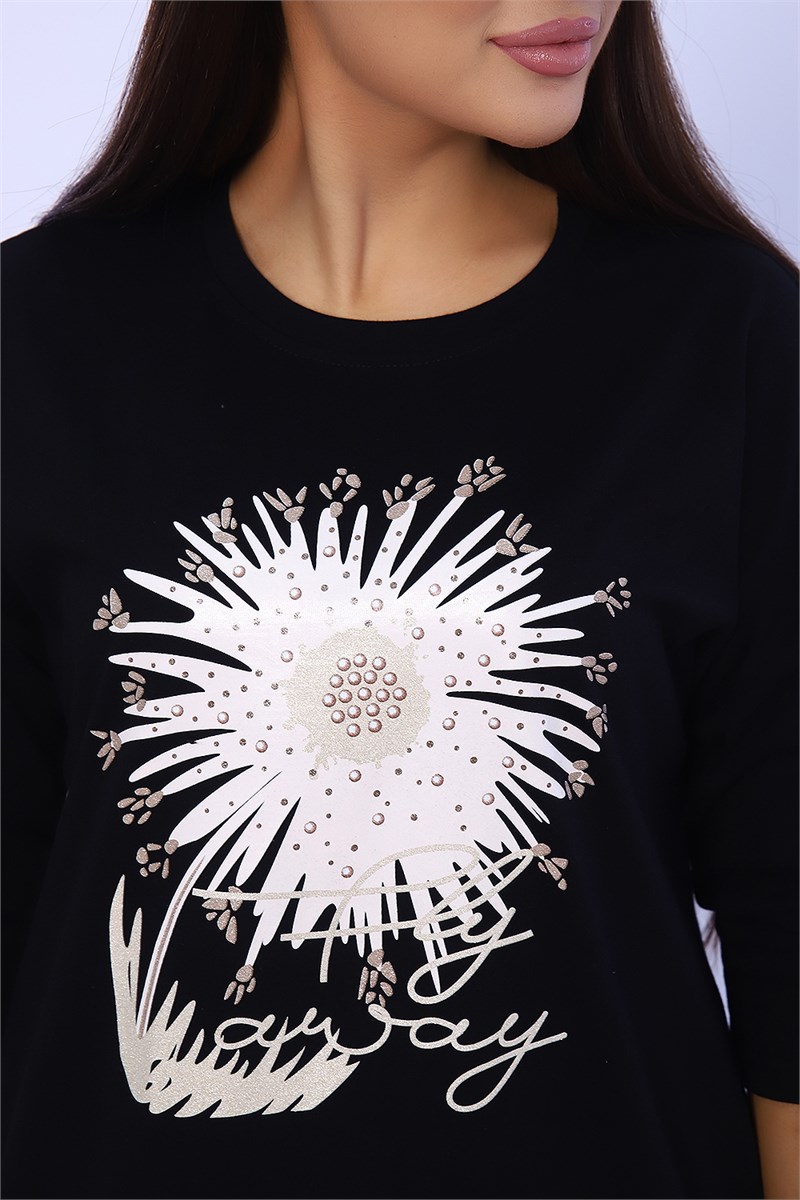 Женский лонгслив - футболка с рукавом 3/4, изготовлена из гладкого трикотажного полотна с оригинальным принтом, разнообразит ваш ежедневный образ. Футболка будет хорошим дополнением к джинсам, брюкам. Рукав 3/4 очень актуален в любую погоду!