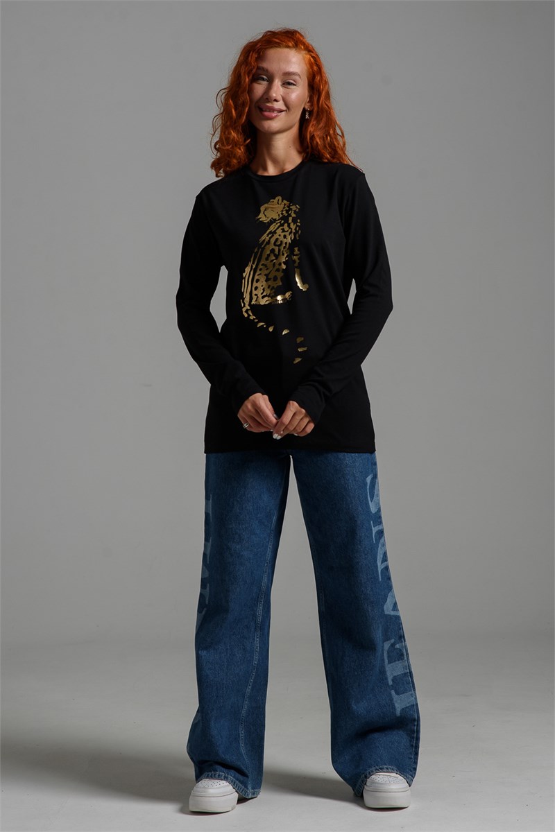 Модель8544 Футболка с длинным рукавом женская (фольга)