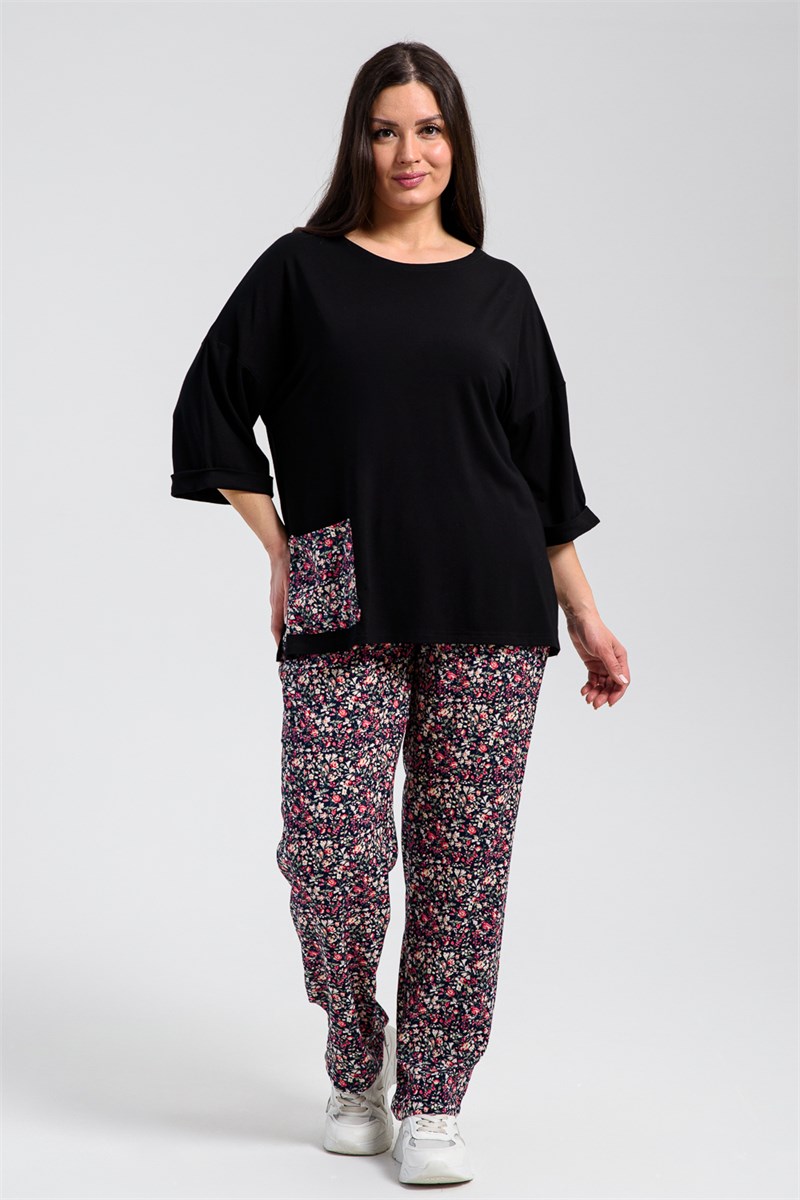 Костюм женский: туника из вискозы и брюки из штапеля. Туника очень свободная. Горловина округлая, рукав цельнокроенный со шво