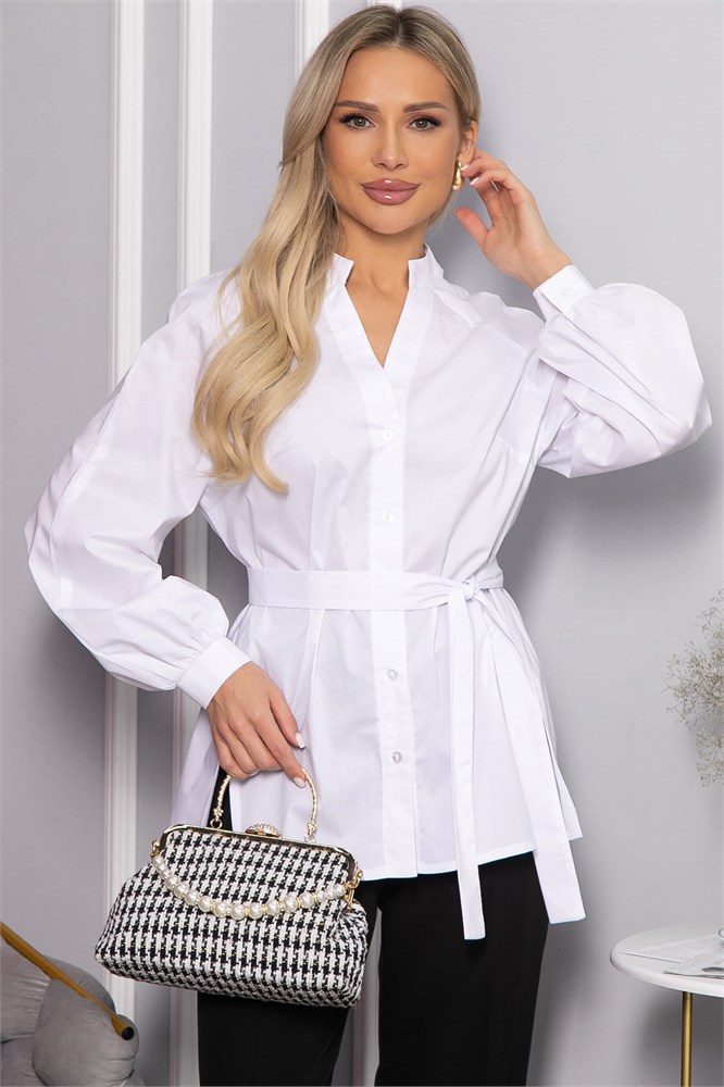 Белая классическая блуза с поясом — элегантный предмет гардероба. Изготовленная из качественной ткани, она отличается аккуратным кроем и универсальным стилем. Пояс подчеркивает талию, добавляя образу женственности и изящности. Идеально подходит для офисных луков, деловых встреч или повседневных образов. Простая и в то же время стильная, эта блуза станет незаменимой частью вашего гардероба.
