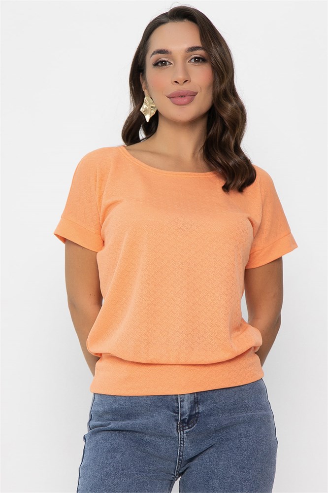 Встречайте изысканную блузку в оранжевом цвете. Этот элемент гардероба станет вашим универсальным спутником. Свободный крой обеспечивает удобство и свободу движений, а круглый вырез добавляет образу элегантности. Спущенный рукав с притачной манжетой придает модели особый шарм. Низ блузы на широкой ножке.