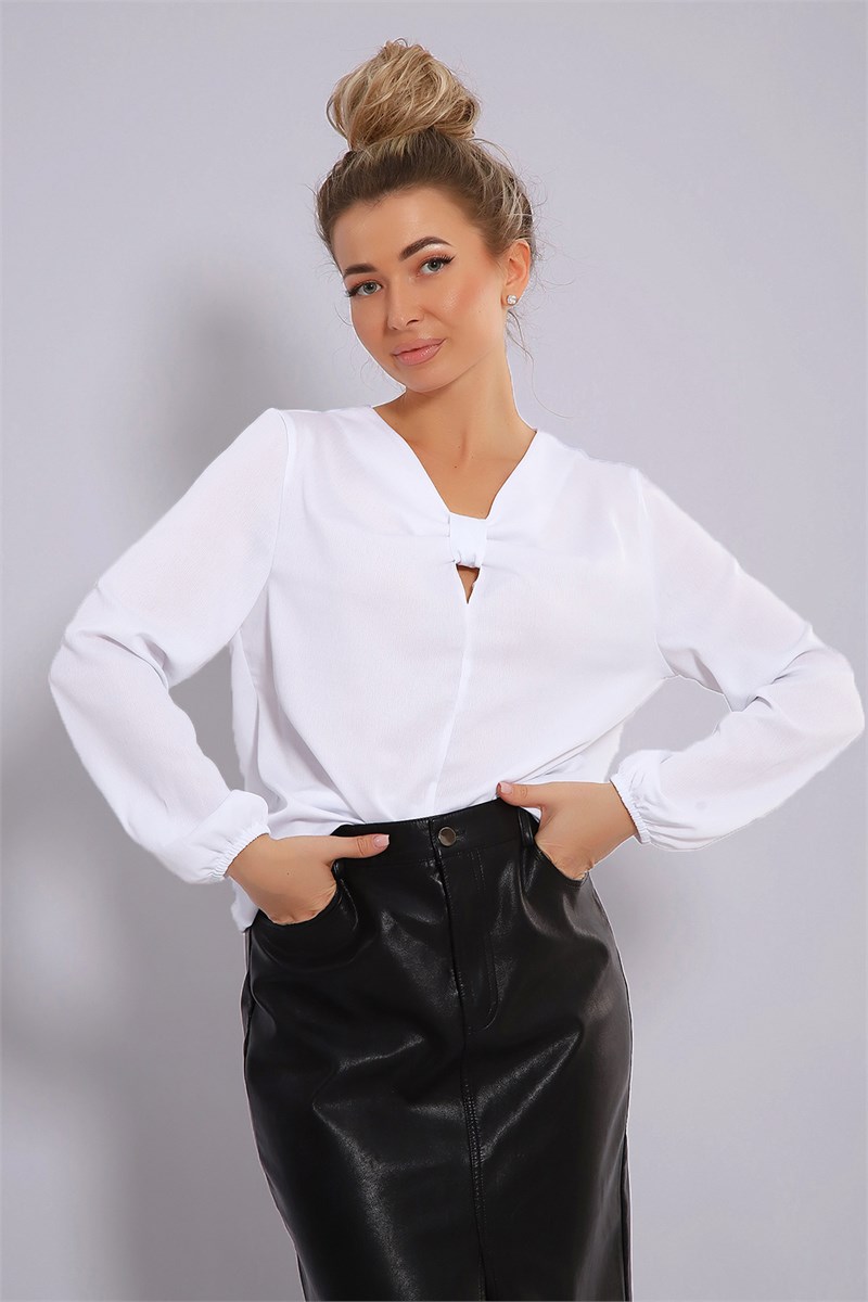Важная и незаменимая часть гардероба деловой женщины - офисная блузка из тонкого крепа. Ткань приятна к телу, не мнется, едва просвечивает. Базовые расцветки и классический крой без лишних деталей помогут вам создать деловой и в то же время женственный образ. Блузка прямого кроя, длинный рукав снизу присборен на резинку. Изюминкой изделия является пата, при помощи которой на груди образуются мягкие складки. Горловина обработана обтачкой, длина изделия чуть ниже линии бедра. Блузку можно комбинировать и с брюками, и с юбкой, носить взаправку и навыпуск. В офисе, в школе, на празднике или на торжественном мероприятии эта блузка будет уместна и востребована, в ней вы будете себя чувствовать комфортно и уверенно.