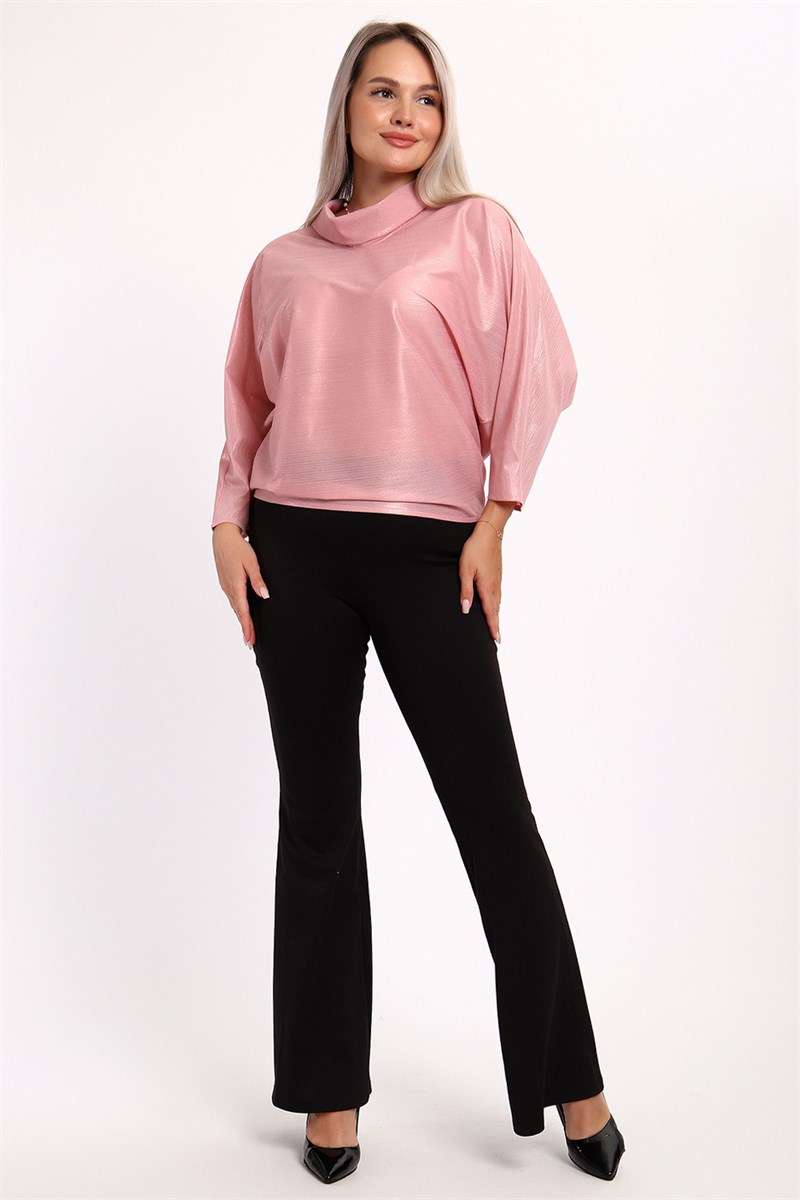 Нарядная и эффектная блузка из ткани шифон- металлик. Ткань тонкая, слегка прозрачная, имеет красивый металлический блеск, переливаясь на складках изделия, не мнется и отлично драпируется. Свободный крой и рукав летучая мышь делает эту блузку универсальной, подходящей на любую фигуру. Длина рукава 3/4, воротник- хомут придает женственности образу. Блузка слегка заужена к низу, чтобы на бедрах образовался напуск. С помощью этой блузки можно создать и праздничный, и деловой, и повседневный образ, комбинировать с юбкой и брюками. Широкий размерный ряд - с 48 по 62 размеры.