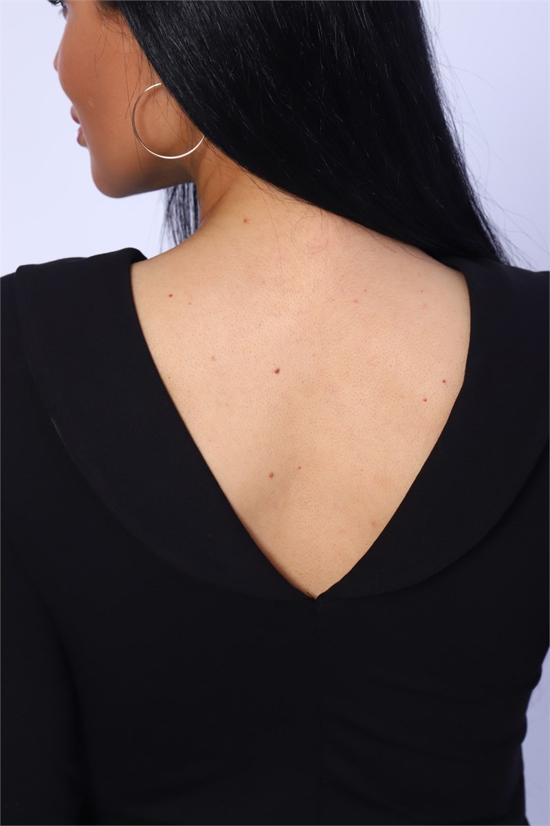 Боди с длинным вточным рукавом, отложной декративный ворот с глубоким вырезом на спине. Ластовица с застежкой на металлических крючках.