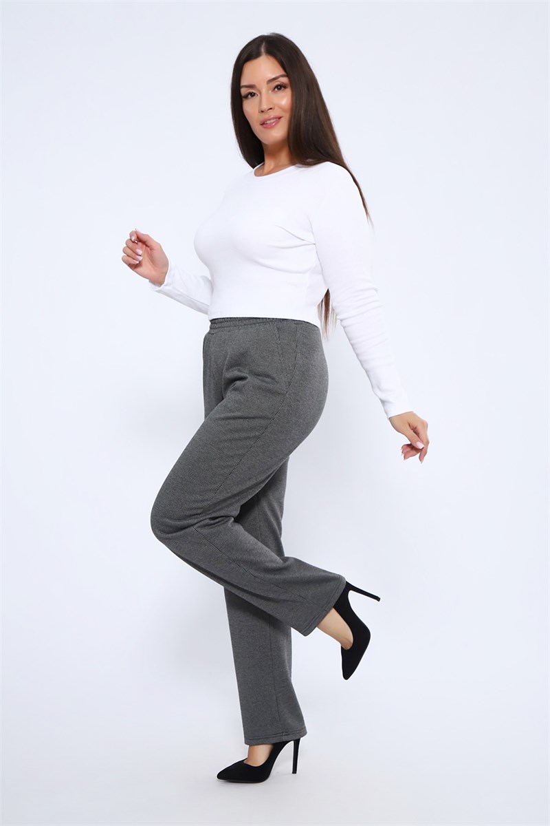 Очень удобные и практичные брюки на прохладное время года. Изготовлены из плотного трикотажного жаккарда, в составе которого 45% вискозы, что обеспечивает комфорт при носке изделия. Брюки прямого кроя, зауженные к низу, пояс на резинке заготовлен на спецмашине, по бокам внутренние карманы. Брюки будут незаменимы и на работе ,и на прогулке. Будут хорошо смотреться и с классической обувью на каблучке, и со спортивной. Широкий размерный ряд до 62 размера. В замерах обхват талии соответствует длине резинки в растянутом виде.