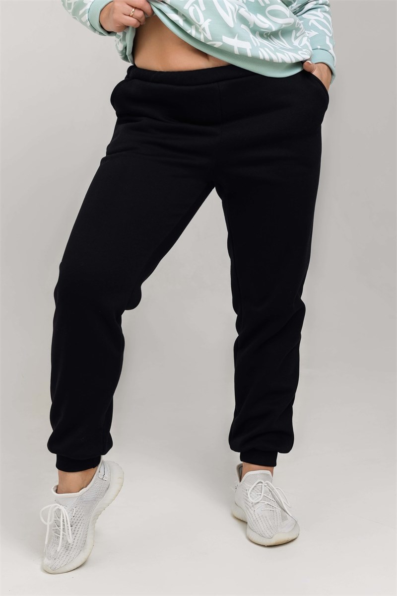 Брюки с начесом из футера 3-х нитки, пенье качества. Качество пенье - это высочайшее качество полотна. На ощупь полотно гладкое и шелковистое, не склонного к образованию катышков. Брюки выполнены в классическом черном цвете, что позволяет комбинировать их с различными расцветками толстовок. Прекрасно смотрятся в комплекте с толстовками 50525, так как оба изделия выполнены из полотна прекрасного качества. Шелковистый начес очень приятен к телу. Манжеты выполнены из качественной рибаны.
