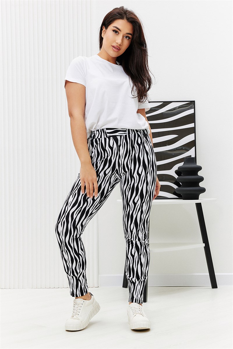 Брюки женские с завышенной талией яркой оригинальной расцветки выполнены из кулирки 100% хлопок. Брюки на широком поясе с резинкой, спереди защипы, по бокам карманы, внизу заужены благодаря защипам. Изделие имеет очень удобную посадку, брюки комфортные в носке, идеально подойдут как для дома, так и для отдыха.