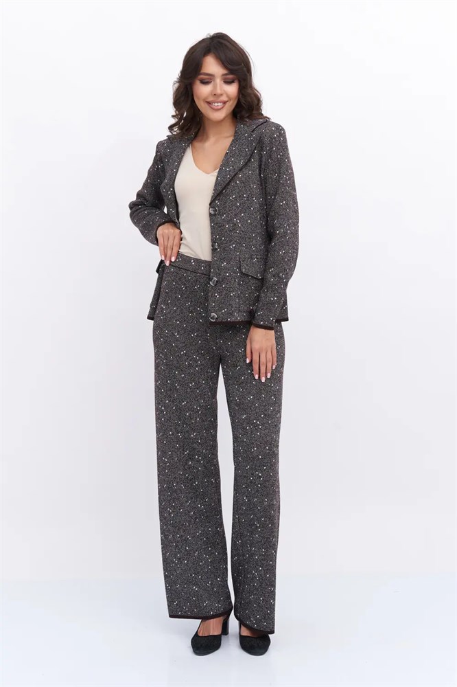 Женские вязаные трикотажные брюки прямого силуэта на эластичном поясе. Изделие выполнено жаккардовым переплетением. Трикотажные брюки - идеальный выбор для тех, кто ищет комфорт и стиль в одном. Высокая посадка и прямой крой придает фигуре элегантность, скрывая недостатки и подчеркивая достоинства. Брюки из трикотажной ткани – это тренд, который никогда не выйдет из моды! С ними можно составить деловой, повседневный и строгий образ. Параметры брюк: длина 109 см, длина внутреннего шва 79 см, ширина внизу 27 см
