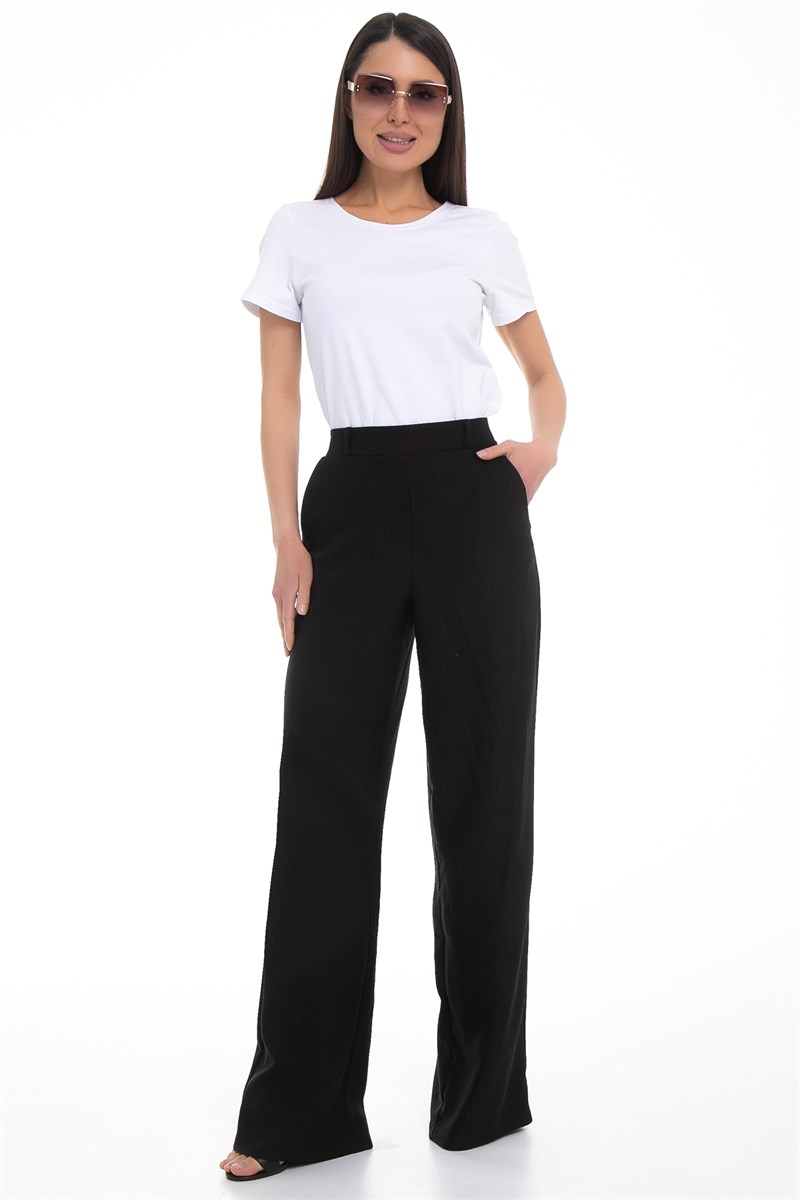 Женские летние брюки палаццо - идеальный выбор для жарких дней! Удобный крой и легкая вискозная ткань "жатка под лен" подарят вам свободу движений и максимальный комфорт. Модель, которая прекрасно сядится на любую фигуру и скрывает все недостатки. Благодаря резинке на талии, такая модель идеально подойдет большинству женщин. Пояс притачной, по переду классический с имитацией застежки, по спинке вставлена резинка шириной 4 см для плотного прилегания в области талии. В боковых швах удобные карманы. Прямые свободные боюки - идеальный выбор для создания стильного современного образа.