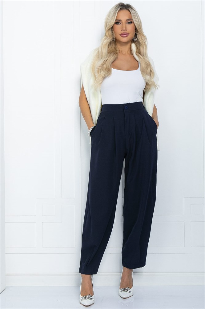 Стильные и удобные брюки-бананы разнообразят ваш гардероб и не оставят равнодушными. Каждая деталь здесь уникальна: застежка, карманы по бокам, складки по линии талии, защипы по низу брюк и свободный крой от бедра. Идеально сочетаются с различными стилями одежды - от спортивного до более формального. На поясе по задней половинке брюк - резинка, для более комфортной посадки.