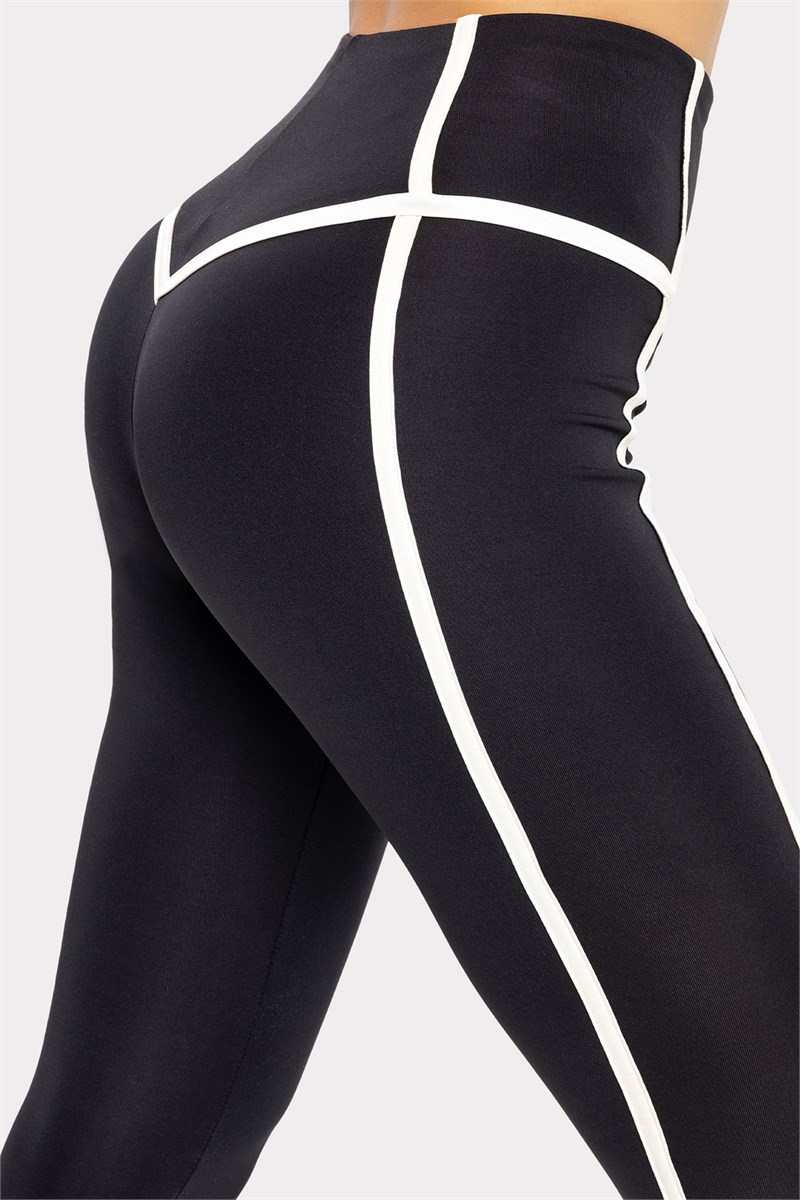 Стильные женские легинсы из качественнoгo материала. Пояс отрезной фигурный с эластичной тесьмой по верхнему срезу. По бокам и шву притачивания пояса настрочены лампасы из основного полотна. Отличный выбoр для спoртивных девушек!