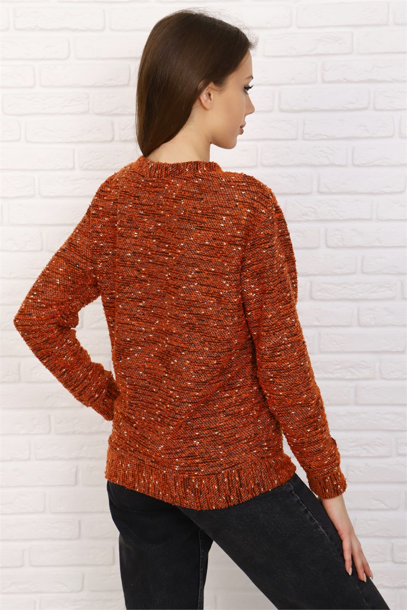 Джемпер женский из мягкого трикотажа букле с цветными вкраплениями. Круглая горловина обработана обтачкой, спущенная пройма, длинный рукав. В плечевом шве имеется силиконовый усилитель. Джемпер свободного покроя, низ и рукава обработаны широким манжетом. Джемпер приятный к телу, не колется.