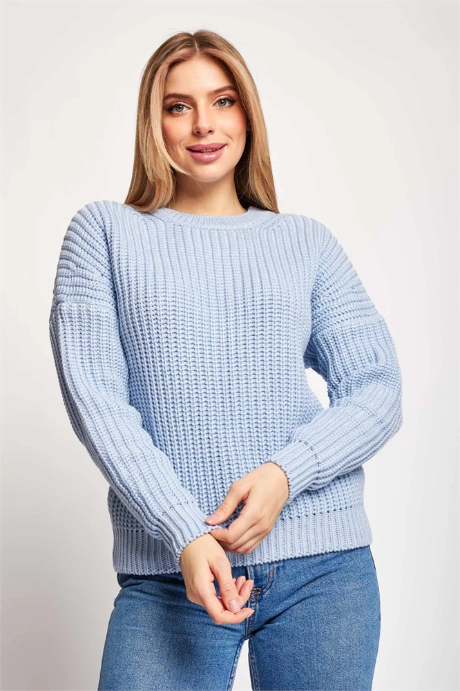 Джемпер женский вязаный с круглой горловиной без застежки. Модель выполнена из высококачественной пряжи с составом 30% шерсть 70% ПАН переплетением, образующим "жемчужные" петли. Джемпер однотонный, имеет свободную посадку в области груди за счет "спущенного" плеча. Рукава втачные длинные, длина составляет 61 см. Джемпер будет кстати на любой случай жизни. На работу или на прогулку. Он согреет Вас теплом и укутает уютом!