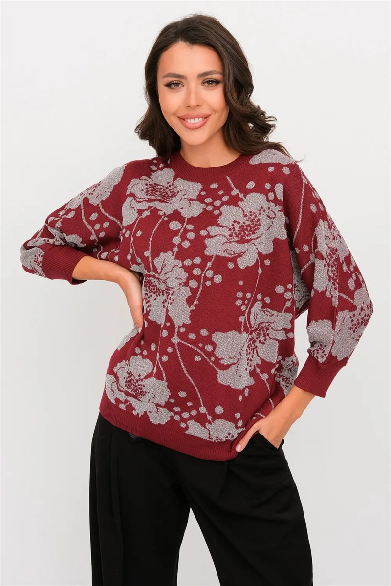 Нарядный женский трикотажный джемпер премиум качества с актуальным круглым вырезом и цельнокроеным рукавом длиной 7/8, Этот вязаный джемпер изготовленный из нежнейших материалов с добавлением нитки люрекса, он никогда не вызовет дискомфорта, так как не колется и приятно прилегает к телу, позволяя ему дышать. Метанить (люрекс) проходит по всему полотну изделия, в результате чего происходит деликатное точечное мерцание. Джемпер легко сочетается с брюками, юбками, джинсами. Вязаный джемпер подчеркнет вашу яркую индивидуальность, в нём вы непременно привлёчете восторженные взгляды окружающих! Рекомендуем к джемперу юбку Д3523 и брюки Д3521.