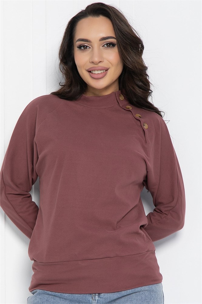 Джемпер в ягодном оттенке с пуговицами на передней части — это великолепное дополнение к вашему гардеробу. Он выполнен в свободном силуэте, рукава по типу «летучая мышь» и идеально подходит для создания повседневных образов.