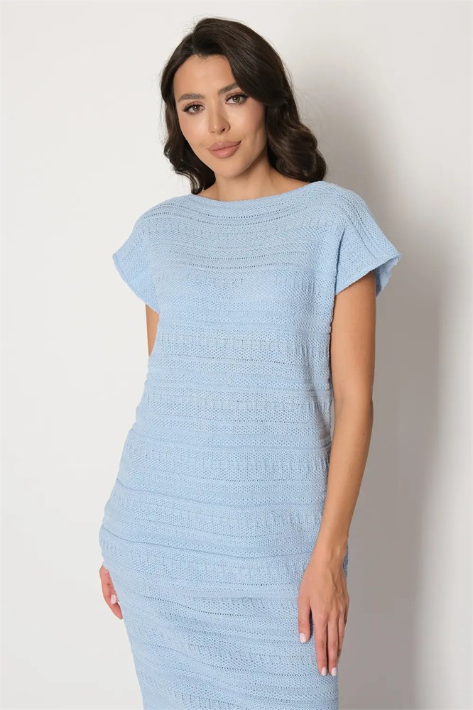 Женский вязаный джемпер свободного силуэта со спущенным плечом. Ворот-лодочка. Джемпер выполнен структурным рельефным переплетением. Можно носить как костюм с юбкой И 022.