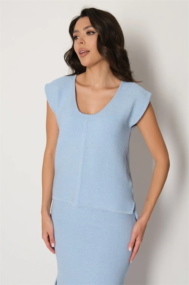 Женский вязаный джемпер свободного силуэта со спущенным плечом.