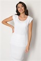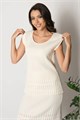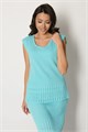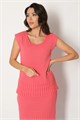 Женский вязаный джемпер полуприлегающего силуэта со спущенным плечом. Джемпер выполнен кулирной гладью, нижняя треть изделия переплетением-лапша с эффектом перфорации. Джемпер можно носить в комплекте с юбкой, вывязанной аналогичным переплетением и узором. Артикул юбок И 014, И 014дл, И 017.