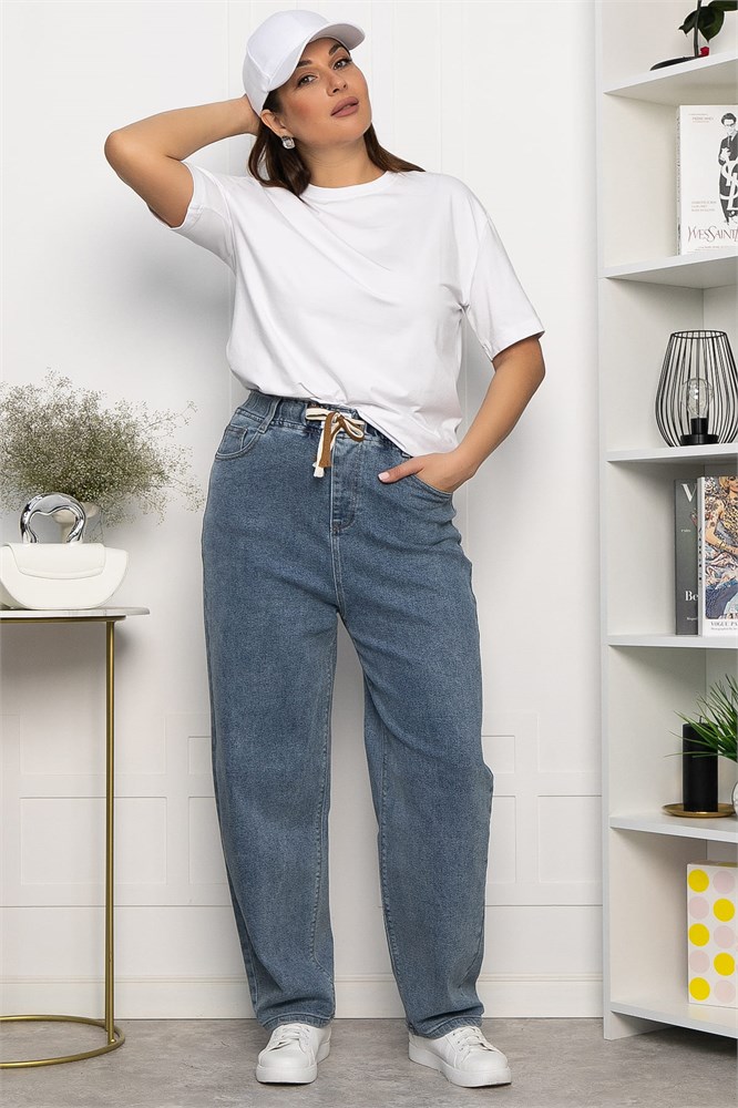 Джинсы в светло-синем цвете станут незаменимым элементом вашего гардероба и сделают каждый день комфортным и приятным! Они имеют удобный пояс на резинке с дополнительным шнурком спереди, что обеспечивает идеальную посадку и свободу движений. Боковые и задние карманы добавляют практичности, позволяя удобно хранить необходимые мелочи.
