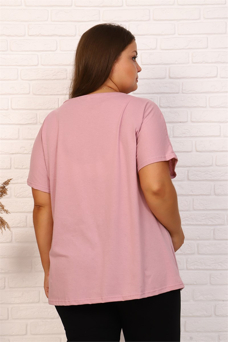 Футболка женская, свободного покроя. Рукав спущенный. Низ изделия обработан на плоскошовке.