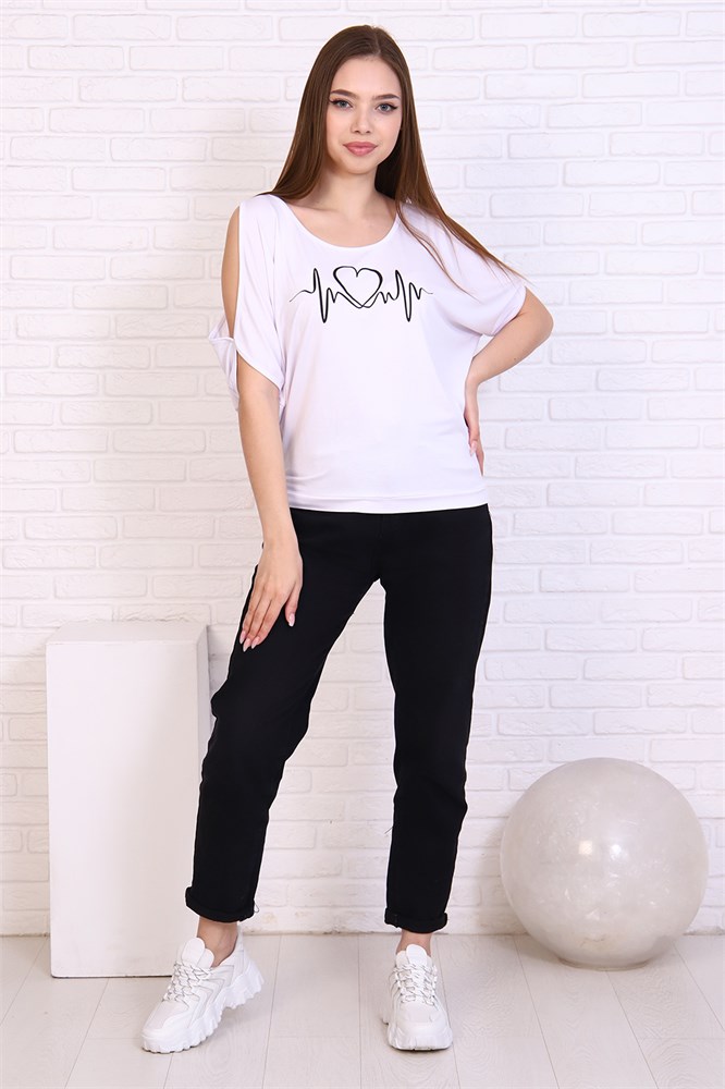 Футболка с молодёжным принтом из приятной к телу вискозы. Модель летучая мышь в стиле ОВЕРСАЙЗ, с глубоким декольте, большими разрезами по рукаву, что придаёт изделию некую изюминку и привлекательность. Низ футболки обработан широким манжнтом. Отличный вариант для летнего гардероба.