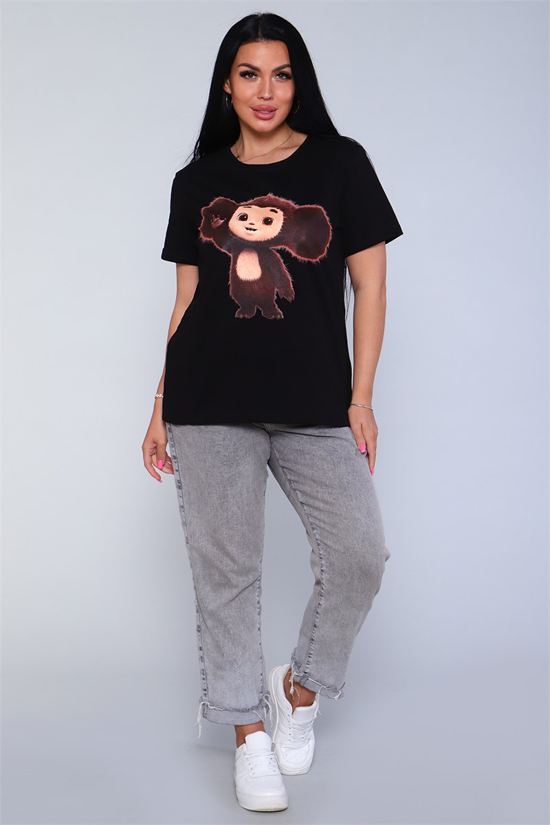 Футболка с принтом прямого силуэта, с коротким рукавом. Вырез горловины круглый, обработан кантом.