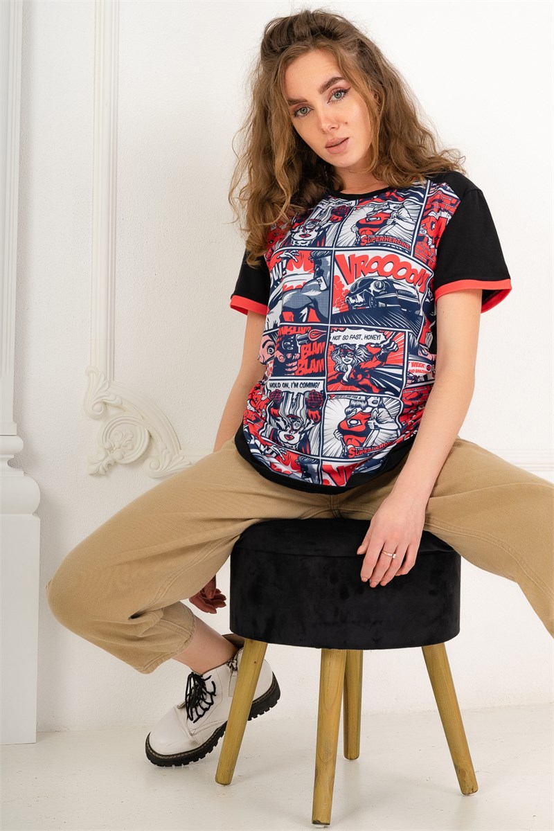 Стильная женская футболка. Основная ткань изделия 100% хлопок. На передней полочке принтованная вставка из ткани джерси (полиэстер), принт выполнен с использованием технологии сублимационной печати. Идеально подойдет для прогулок в теплую погоду.
