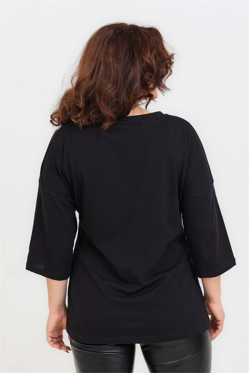 Женская футболка из мягкой, натуральной ткани. Благодаря свободному крою безупречно садится по фигуре. Горловина обработана широким кантом и дополнена серебристым шнуром, который гармонично перекликается с принтом на футболке. Рост модели на фото 169см, параметры 98-86-105