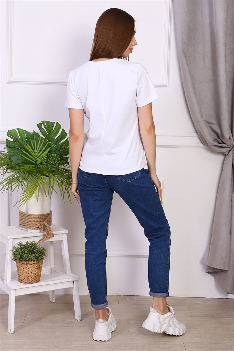 Футболка классического фасона, с коротким рукавом и округлым вырезом. Декорирована принтом. Универсальная модель футболки отлично подойдет для любого образа и станет необходимой вещью в вашем гардеробе