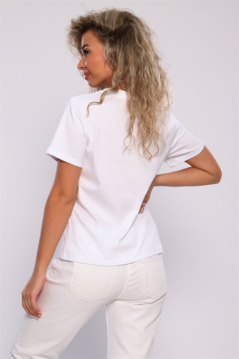 Футболка классического фасона, прямого кроя, с коротким рукавом и округлым вырезом. Декорирована принтом. Универсальная модель футболки отлично подойдет для любого образа и станет необходимой вещью в вашем гардеробе