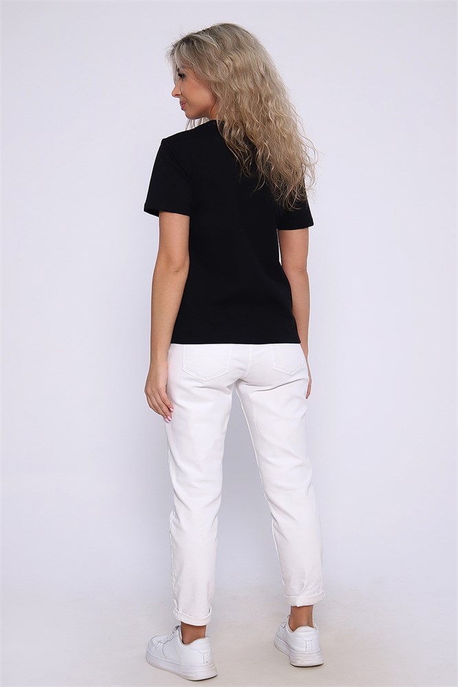 Футболка классического фасона, прямого кроя, с коротким рукавом и округлым вырезом. Декорирована принтом. Универсальная модель футболки отлично подойдет для любого образа и станет необходимой вещью в вашем гардеробе. Ткань кулирка пенье, плотность 160 г.