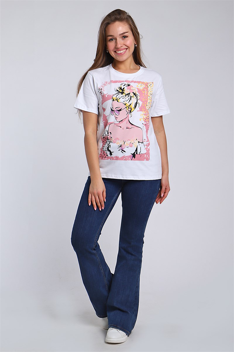 Футболка классического фасона, прямого кроя, с коротким рукавом и округлым вырезом. Декорирована принтом. Универсальная модель футболки отлично подойдет для любого образа и станет необходимой вещью в вашем гардеробе. Ткань кулирка пенье, плотность 160 г.