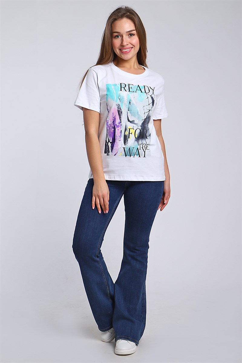 Футболка классического фасона, прямого кроя, с коротким рукавом и округлым вырезом. Декорирована принтом. Универсальная модель футболки отлично подойдет для любого образа и станет необходимой вещью в вашем гардеробе. Ткань кулирка пенье, плотность 160 г.