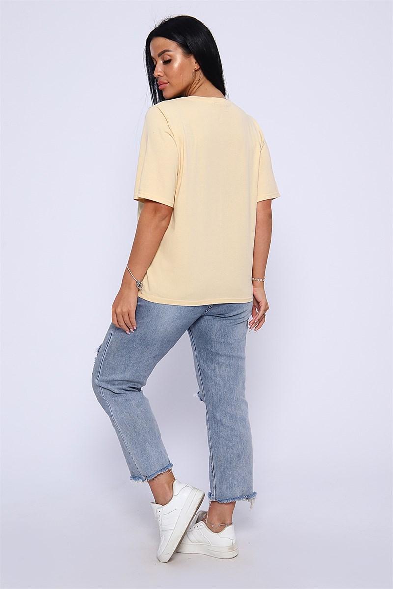 Футболка с благородным блеском золота на необыкновенно женственном принте HE US притягивает взгляд и позволяет чувствовать себя необыкновенной! Прямой силуэт, выверенная длина рукава до локтя, обработка деталей вкруговую с закрепкой. Горловина выполнена из основной ткани. Большие размеры!